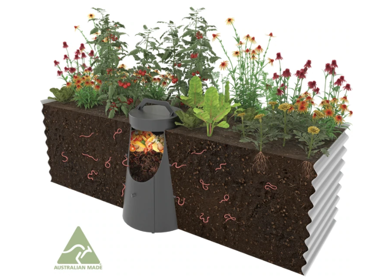 El Worm Feast es de forma cilíndrica, fabricado en Australia y es 100% de plástico reciclado protegido contra rayos ultra violeta, tiene 51,5 cm de alto y 31,4 cm de diámetro, fue desarrollado para transformar los residuos orgánicos de la cocina en un gran fertilizante orgánico gratuito, el cual incentiva un desarrollo fantástico de tus plantas.